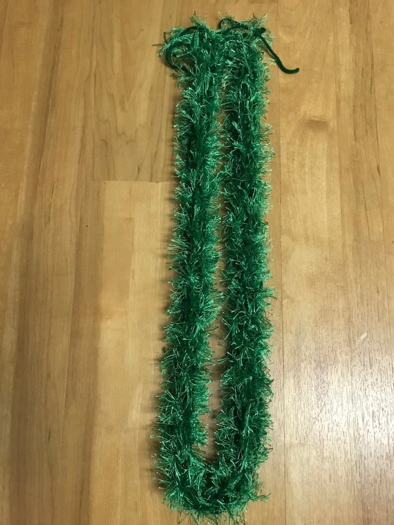 Hawaii eyelash yarn hand knit graduation lei. This graduation lei measures 40 inches in length and is 1.25 inches wide. This graduation lei is royal blue. One can be made in your color choice. Colors available are royal blue, green, yellow, red, purple, and white. You can also message me if you have a special color scheme. Two colors are possible—one color for the eyelash yarn and one color for the acrylic yarn. Made in Hawaii. This is a great gift for the graduate! (This lei is the hand-knit lei, it is not the wound/straw lei.)