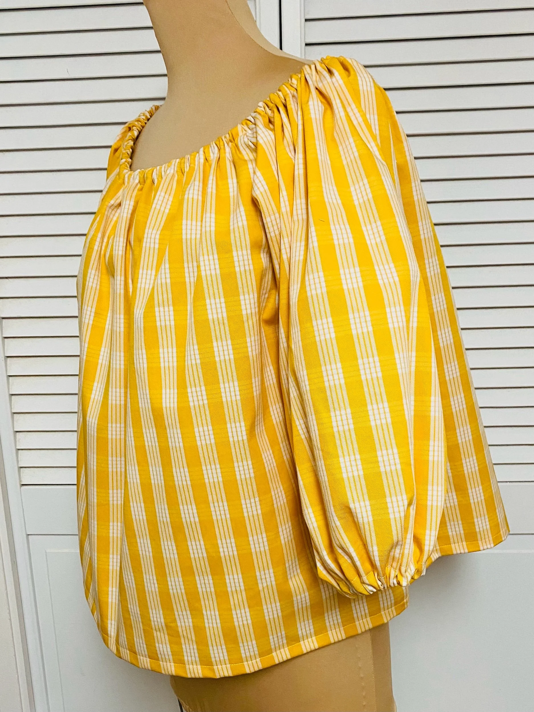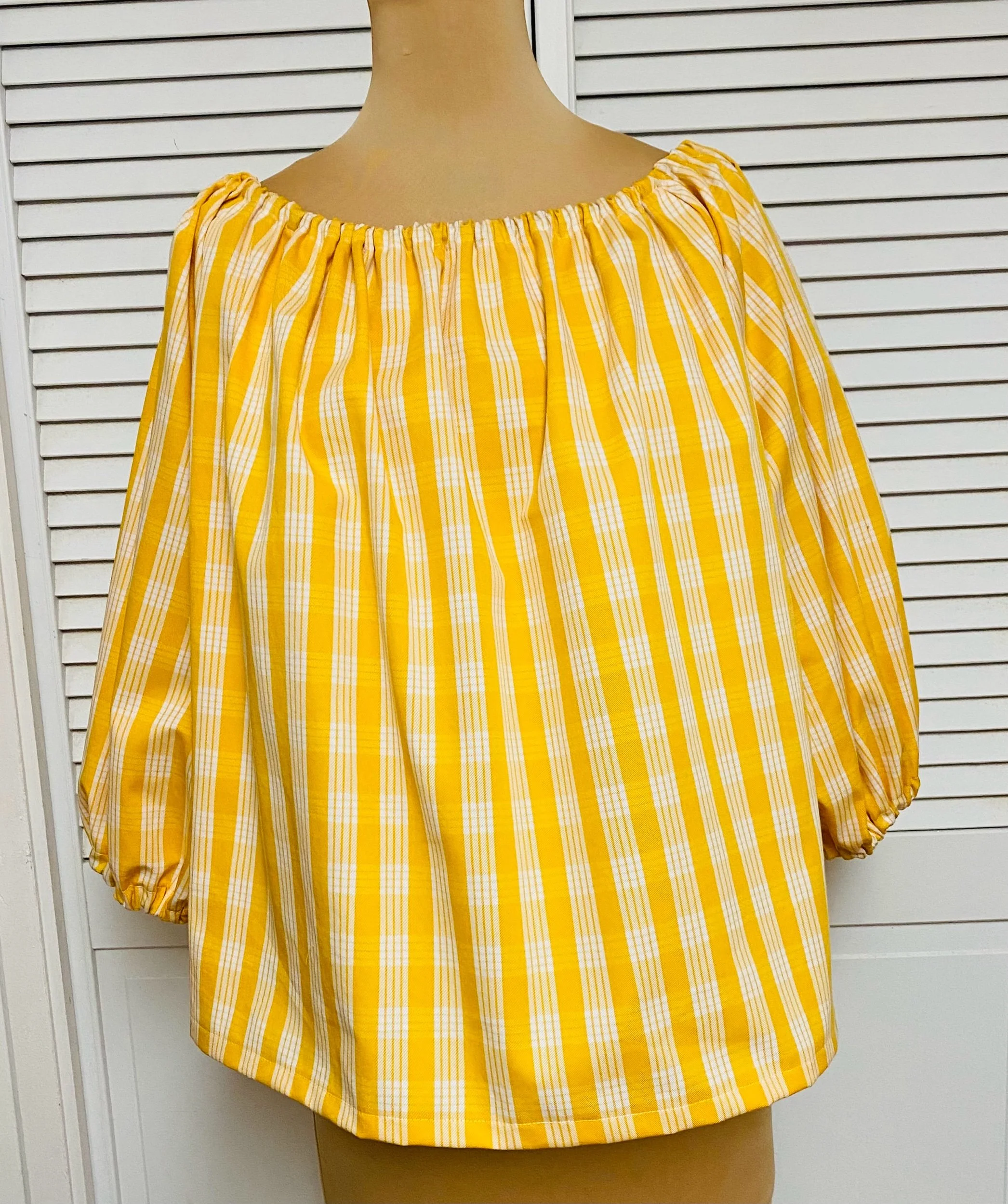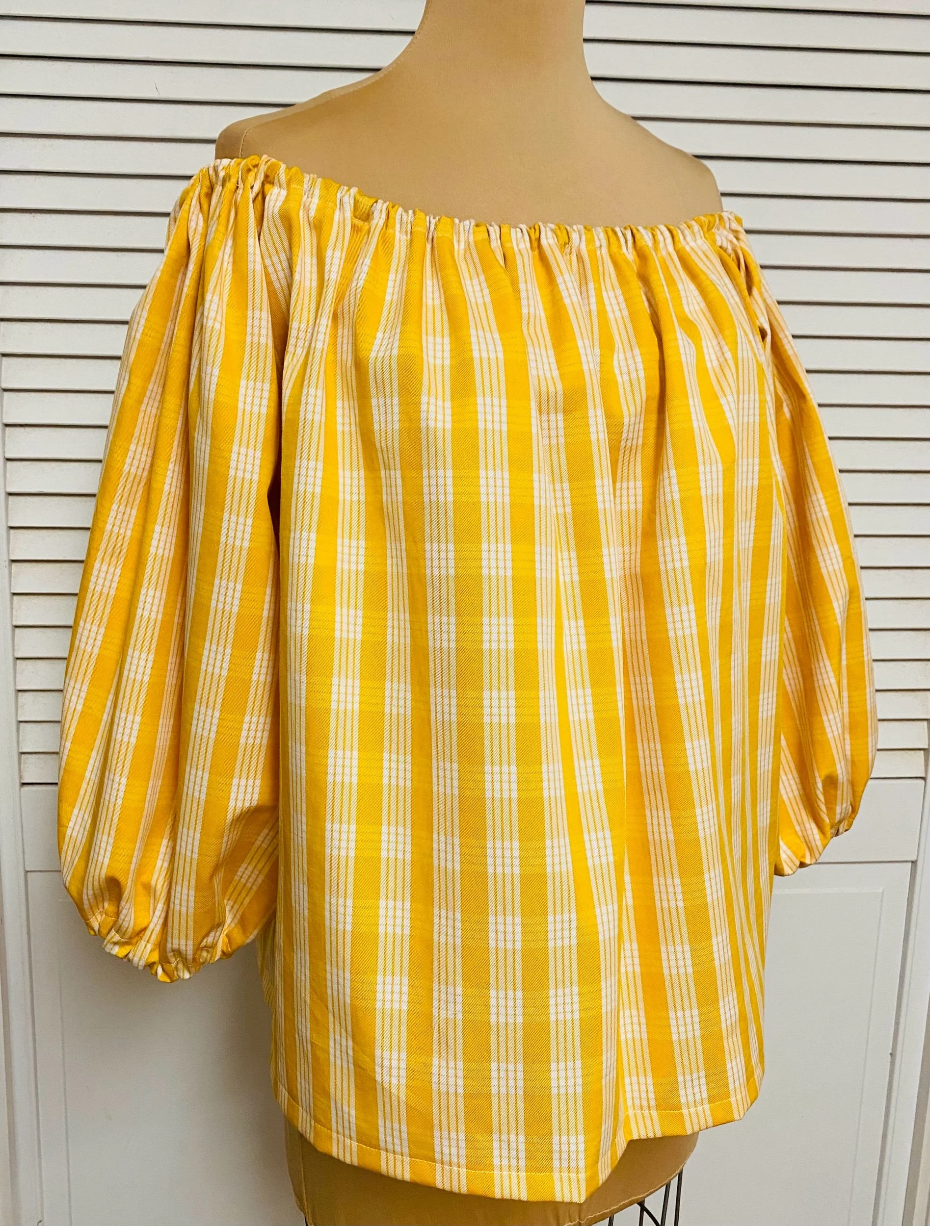Hawaii Palaka 3/4 sleeve elastic on or off the shoulder top. 100% cotton Palaka fabric. Select your size and choice of Palaka color at check out. Handmade by the seller herself. A great gift for yourself or a loved one!
