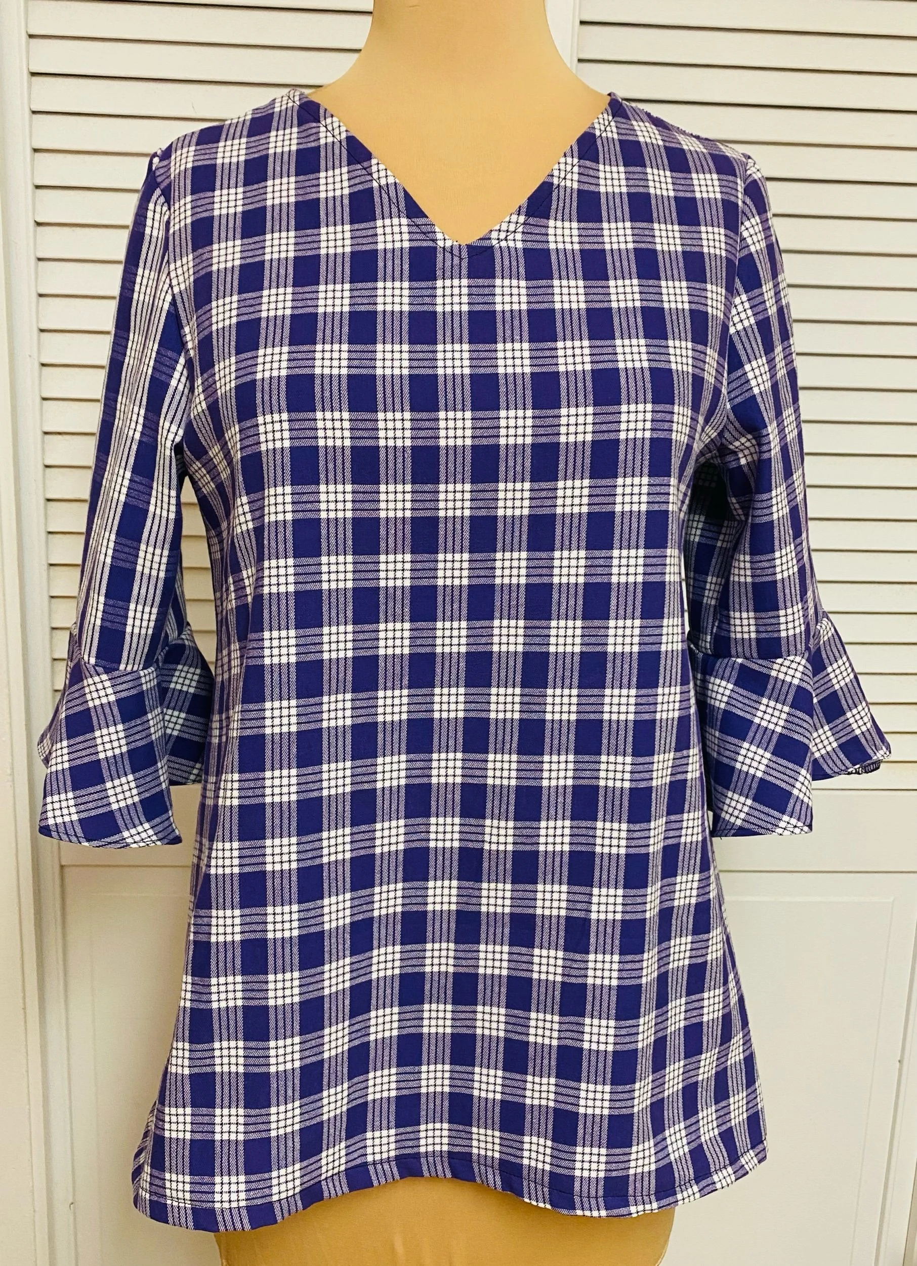 Hawaii three quarter ruffled sleeve 100% cotton Palaka top. Large pullover neckline. Cool, comfortable. Select your size and Palaka color at check out. A great gift for someone special!
